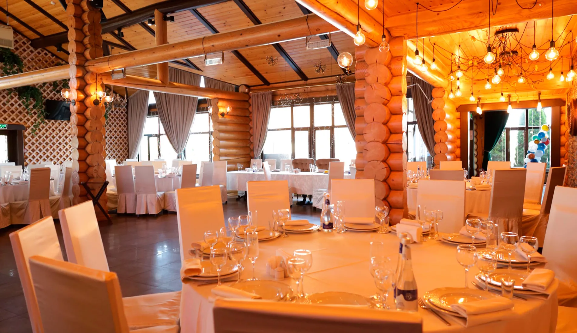 Главный зал загородного клуба "Крёкшино Парк" является смесью стилей шале, рустик, прованс и бохо. Продуманный до мелочей, он непременно заразит "своей" атмосферой гостей Вашего торжества и создаст идеальное настроение.