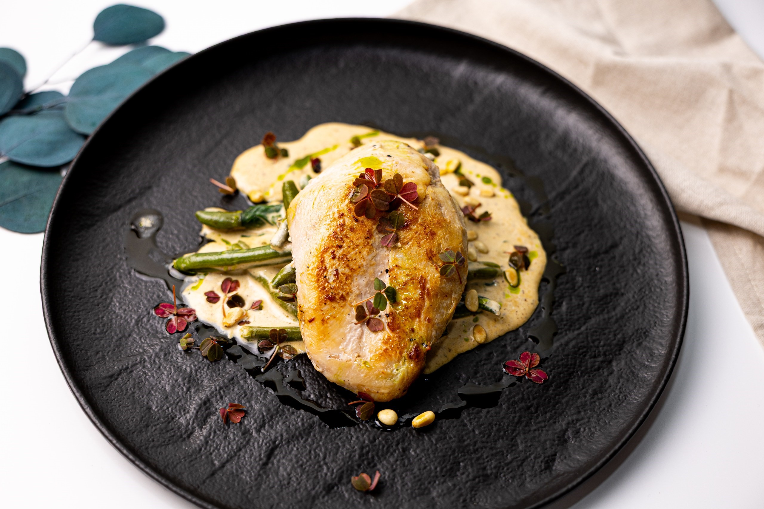 сено из порея, тимьян, кедровый орех