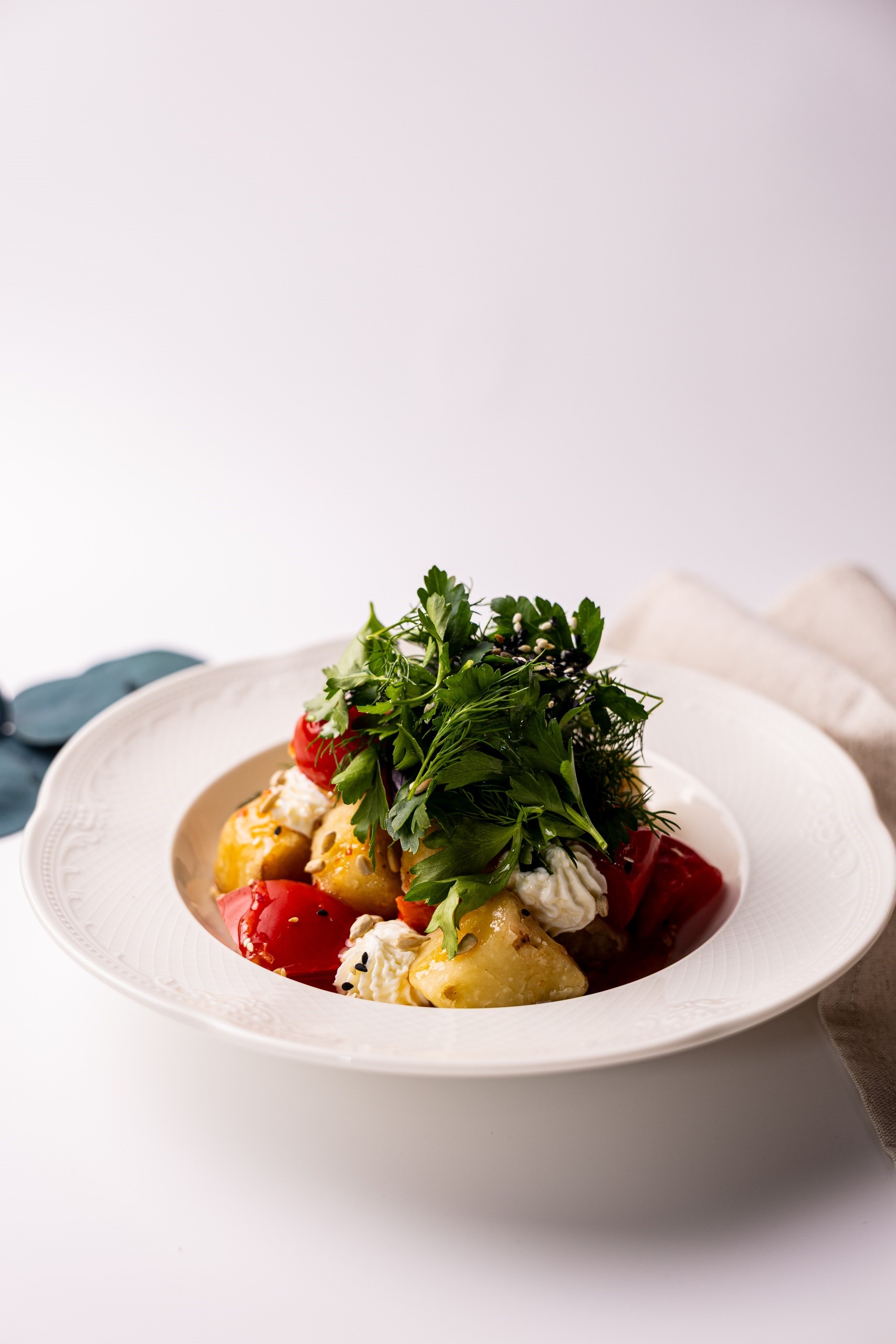 творожный сыр, узбекские томаты