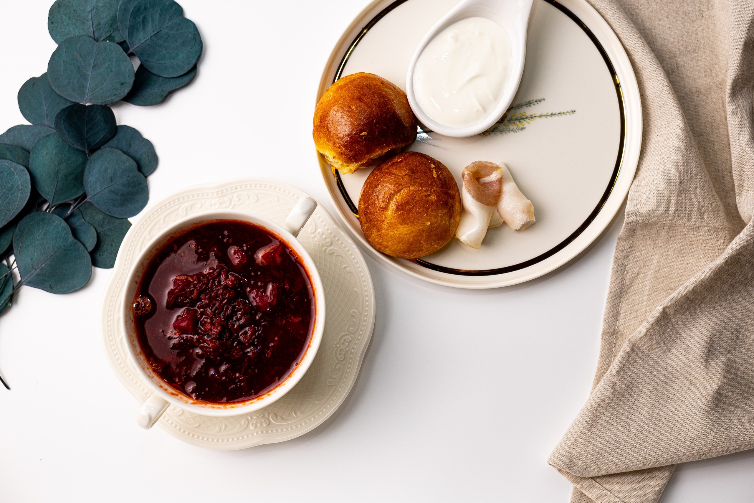 бриошь, томленое мясо, сало, сметана