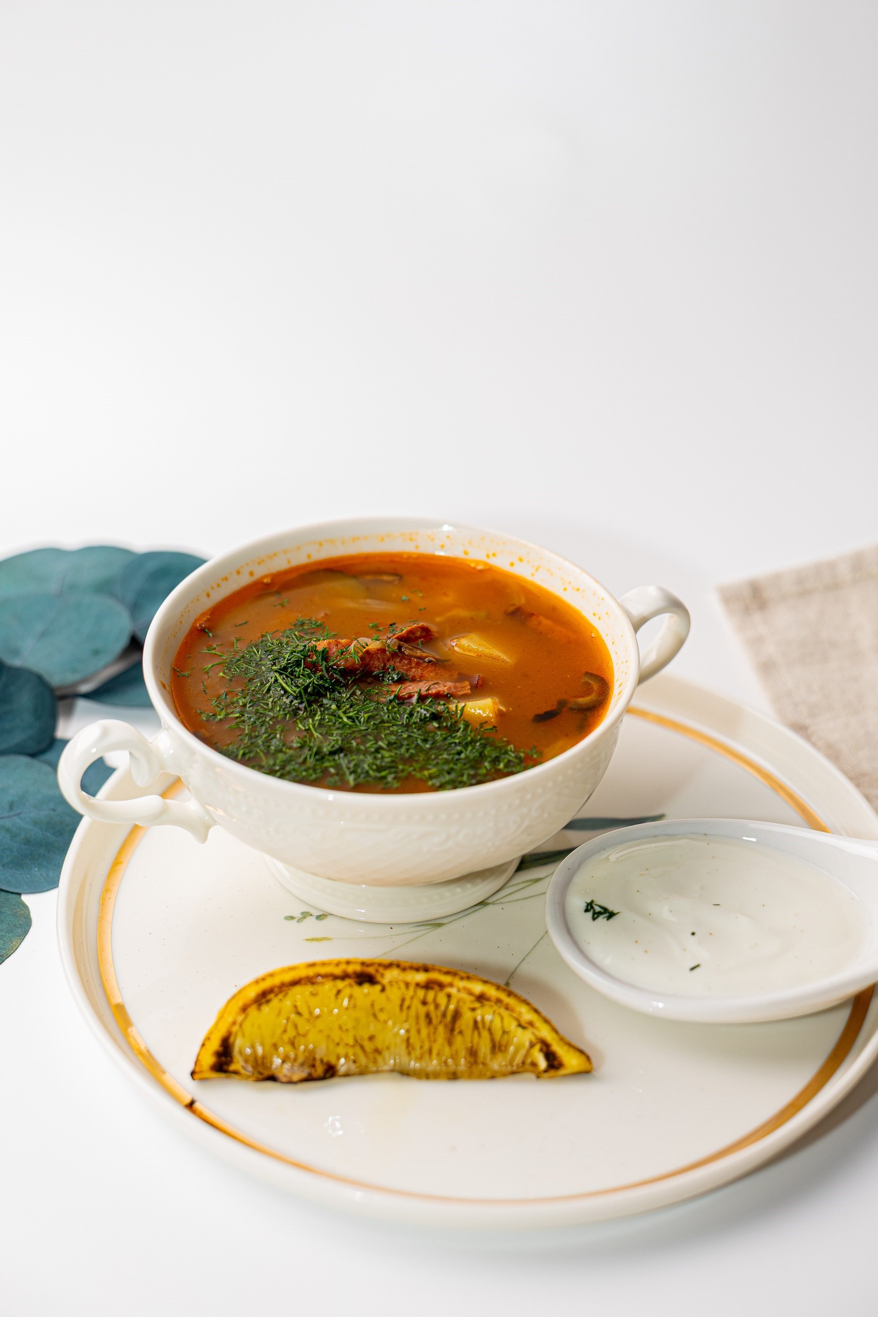 бриошь, томленое мясо, сало, сметана