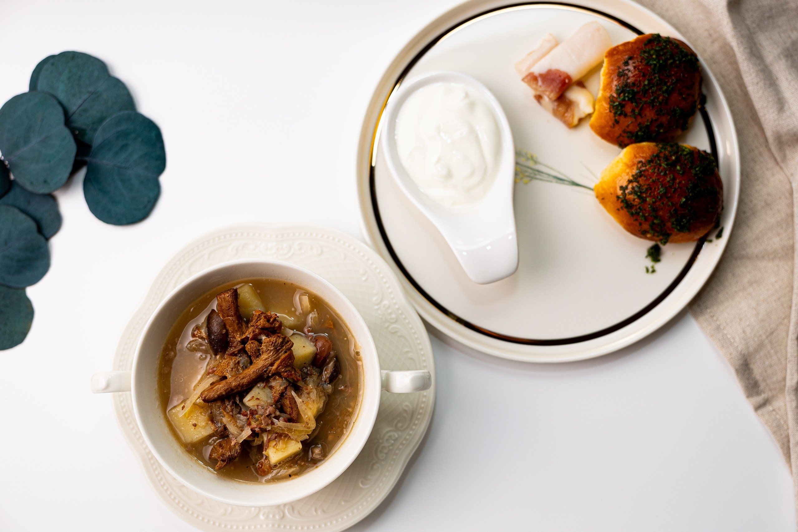 бриошь, томленое мясо, сало, сметана